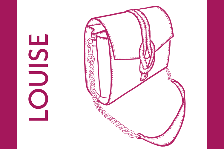LOUISE: een handtas met zijsoufflets uit 2 delen en ritszakje als tussenschot binnenin. Sluiting met Illusion-knot.