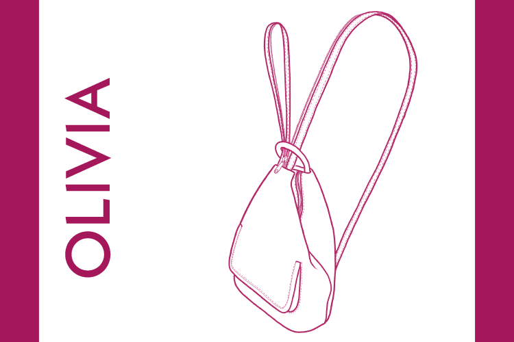 OLIVIA: een rugzakje met ritssluiting die veilig tussen de plooi aan de bovenzijde zit. De schouderriemen kunnen deels worden gesloten tot één riem door middel van een rits, wat het ook gemakkelijker maakt om het rugzakje als tas over één schouder te dragen. Op het voorpand zit een nepenzakje met een klep over. In het achterpand zit een ritszakje. Je kan het rugzakje in de hand dragen via een kort handvat.